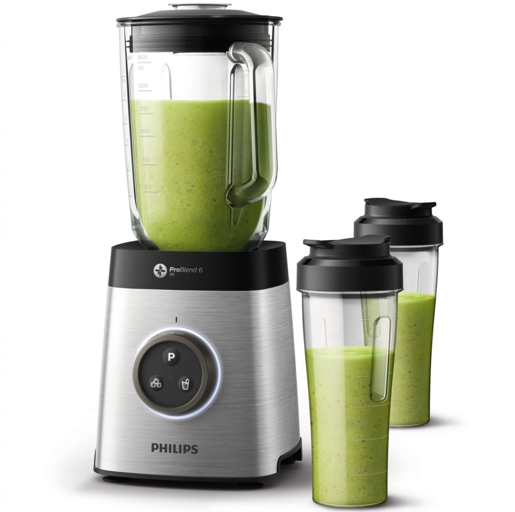На първо място, този блендер се отличава с факта, че той е с голяма мощност от 1400 W. Освен това, блендера е оборудван с иновативна технология ProBlend 6 3D, което го прави отлично средство, когато става дума за пасиране на плодове и зеленчуци. Но най-интересното е, че устройството не идва само, а придружено от стъклена купа с капацитет от 2 L и две високи чаши. По този начин, можете да убедите партньора си да се опита по-здравословен начин на живот.