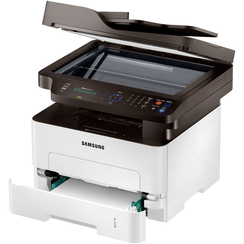 Един модел, който ще ти привлече вниманието, без съмнение, е многфункционалното монохромно лазерно устройство Samsung Xpress M2675F. То притежава много приятен дизайн, факт, който представлява авантаж пред останалите модели, тъй като в много от случайте, външният дизайн има голямо значение. Устройството е разделено в два цвята, горната част е черна, а долната част е бяла. Този модел притежава в горната си част автоматичен фиидер за документи, стъклена повърхност за сканиране, контролно табло в лявата част, място за хартия в долната част. От едната страна се намира тонера, а от другата USB порт и захранващ кабел.